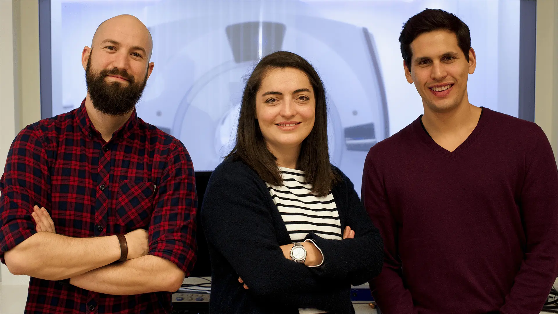 Maria studied the building blocks of life. She gained expertise in biology, physiology, and embryology, developing a deep understanding of biological systems and their interaction with the environment. Pedro and Miguel engineered technology to visualize these systems. Pedro developed algorithms to make magnetic resonance imaging (MRI) faster and more accessible while Miguel built AI models to glean novel insights from imaging data.