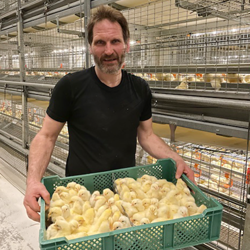We operate two additional large rearing houses located about 1,000 km from the hatchery, with a capacity of approximately 64,000 chicks each. Thanks to in‑ovo sexing, we can now hatch all these chicks in one day and transport them together to central Norway, improving efficiency and logistics.